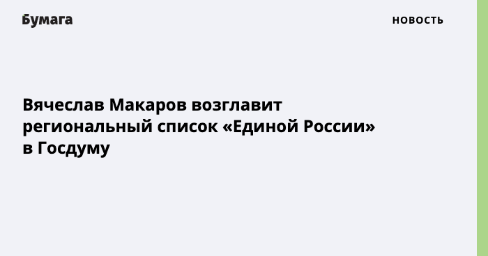Вячеслав Макаров возглавит региональный список «Единой России» в Госдуму