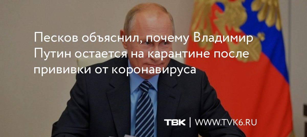 Песков объяснил, почему Владимир Путин остается на карантине после прививки от коронавируса