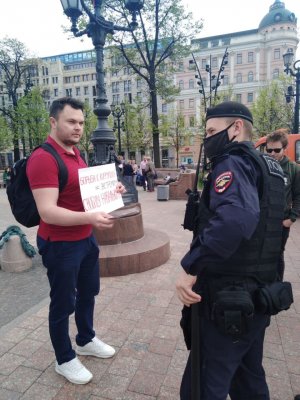 В Москве на Пушкинской площади полиция задержала пикетчиков Никиту Лемкина и Тимофея Илюшина. Об этом ОВД-Инфо сообщили сами задержанные.