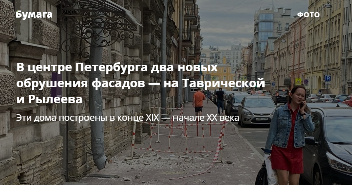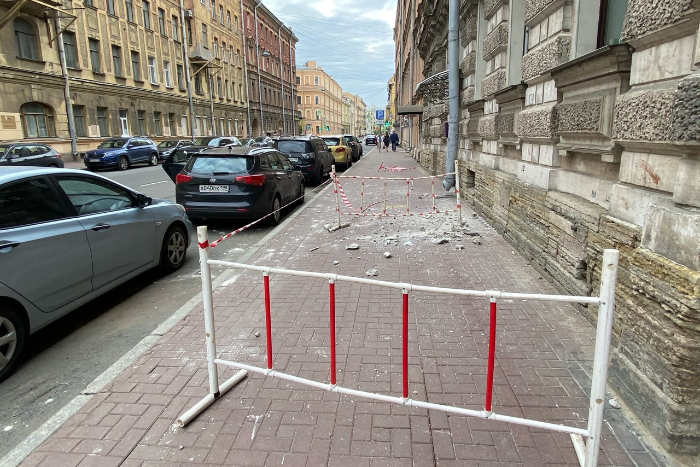 На улице Рылеева и Таврической улице произошли обрушения фасадов. Внимание на это в пятницу и субботу обратили координатор сообщества «Жители МО Литейный округ» Вадим Суходольский и телеграм-канал «Протестный Петербург».