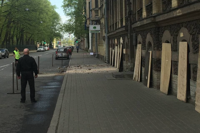 В субботу, 15 мая, очевидцы сообщили о падении кусков фасада на тротуар у дома № 17 по Таврической улице. Сведений о пострадавших не поступало. Участок тоже обнесли лентой.