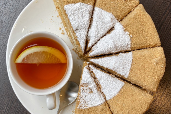 Помимо хлеба в пекарне готовят выпечку и десерты: от слоек и круассанов до эклеров и тортов. Кроме того, в заведении подают завтраки и обеды: блюда из яиц, каши, салаты и супы. Из напитков в меню представлены чай, кофе и свежевыжатые соки.