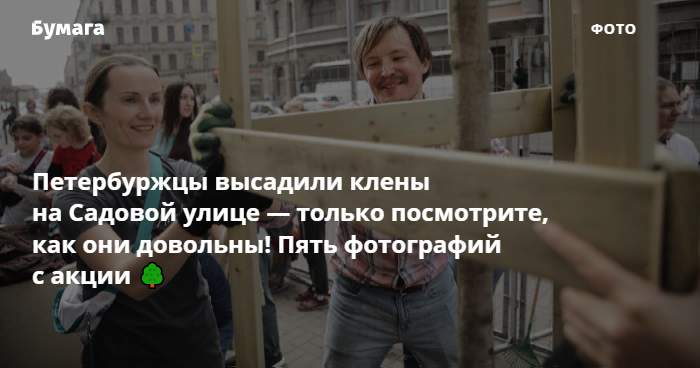 Клены высадили на месте, где после войны росли 16 лип. «Бумага» публикует пять фотографий, предоставленных организаторами, — на них горожане озеленяют центр Петербурга и радуются проделанной работе.
