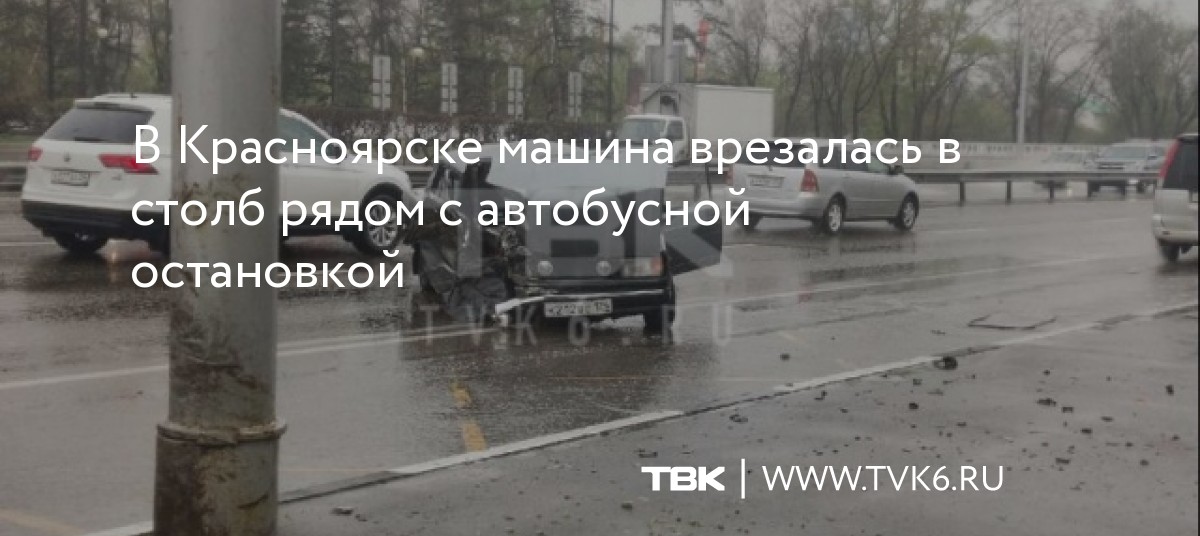 В Красноярске машина врезалась в столб рядом с автобусной остановкой