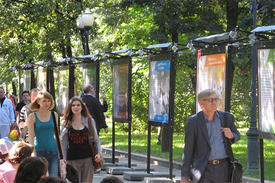 Еще в марте Департамент культуры Москвы подтвердил готовность предоставить для проведения выставки уличные информационные стенды на Чистопрудном бульваре. В середине апреля Сахаровский центр* направил в департамент макет выставки, но 30 апреля оттуда поступило устное сообщение: «Контент не согласован». Письменного разъяснения при этом организаторы так и не получили и 11 мая направили в Департамент культуры Москвы письмо с просьбой официально объяснить причины отказа.