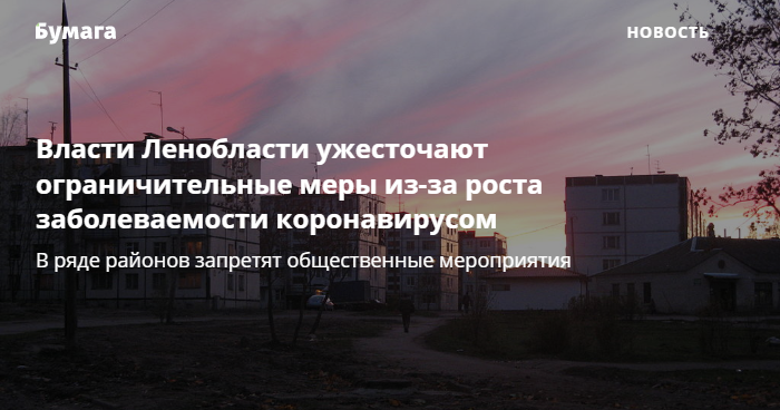 Власти Ленобласти ужесточают ограничительные меры из-за роста заболеваемости коронавирусом