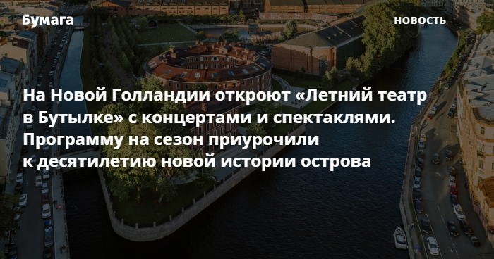 На Новой Голландии откроют «Летний театр в Бутылке» с концертами и спектаклями
