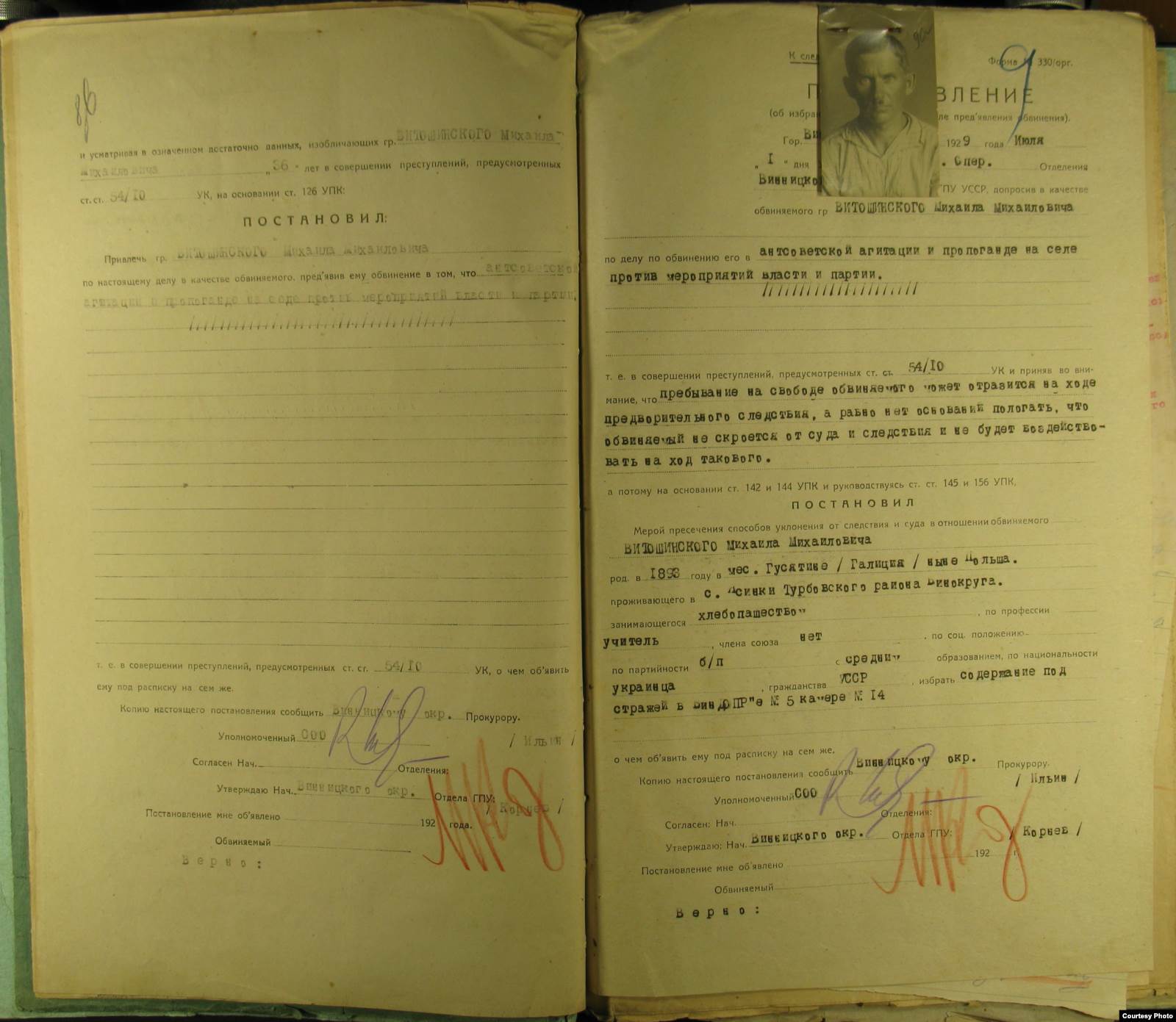 Несмотря на строку в личном деле "из крестьян", за ним пришли: сначала в 1927 году, а затем в 1929-м. Как выяснили Стефан и Галина Витошинские, Михаил после первого ареста в 1927 году согласился сотрудничать с ОГПУ, но так и не написал чекистам ни одного доноса. А вот односельчане на него "стучали" исправно: на основании пяти доносов Михаила Витошинского обвинили в антисоветской деятельности, саботаже хлебозаготовок, подстрекательстве крестьян не платить налоги. Михаил Витошинский получил три года лагерей, срок должен был отбыть на Урале. Там его следы затерялись.