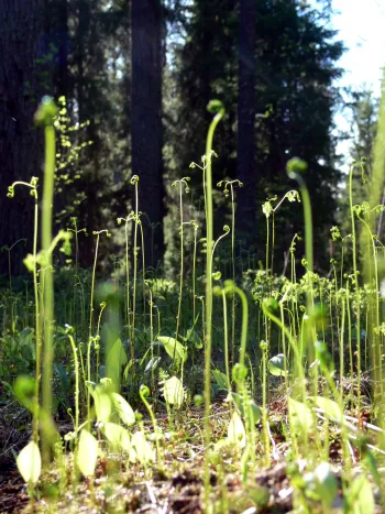 Меня привлекало, впрочем, не соседство с музеем, закрытым на период карантина, но наличие путаной сети лыжных трасс, летом выглядевших как широкие просеки, вдоль которых теньковки охотно селились. Бегая по просекам с микрофоном и сетками, выискивая новых самцов, большинство которых оказались помесями европейской и сибирской теньковок, я все-таки не мог не задержаться перед цветами, экзотическими для жителя средней полосы.