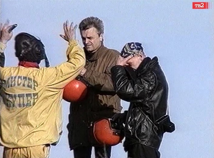 Фото: Константин Кинчев и Александр Ф. Скляр перед полетом на воздушном шаре Автор: ТВ2 Между тем, Кинчева со Скляром после выступления перед студентами повезли за город – прокатиться на воздушном шаре. Правда, с этим полетом вышел казус – случилось довольно жесткое приземление, в ходе которого рокеры чуть не вывалились из корзины. Судя по видеосъемке, оба в этот момент побелели от страха, а Скляр позднее рассказывал мне в одном из интервью, что считал тот день своим вторым днем рождения. Инцидент этот, впрочем, мало чему научил томских воздухоплавателей – спустя несколько лет во время такого же «прогулочного полета» произошла настоящая трагедия, в ходе которой погибла женщина и пострадали столичные журналистка и диджей.
