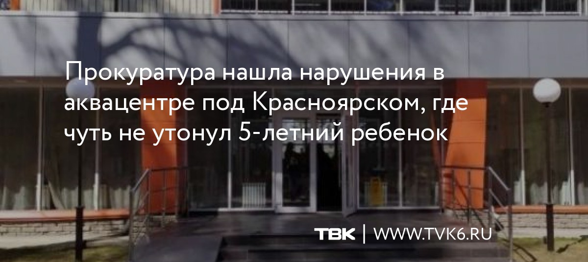 Прокуратура выявила нарушения в частном аквацентре «Дружба» под Красноярском, где 10 мая едва не утонул 5-летний мальчик. Его удалось спасти одному из посетителей, который заметил, что ребенок захлебнулся водой.