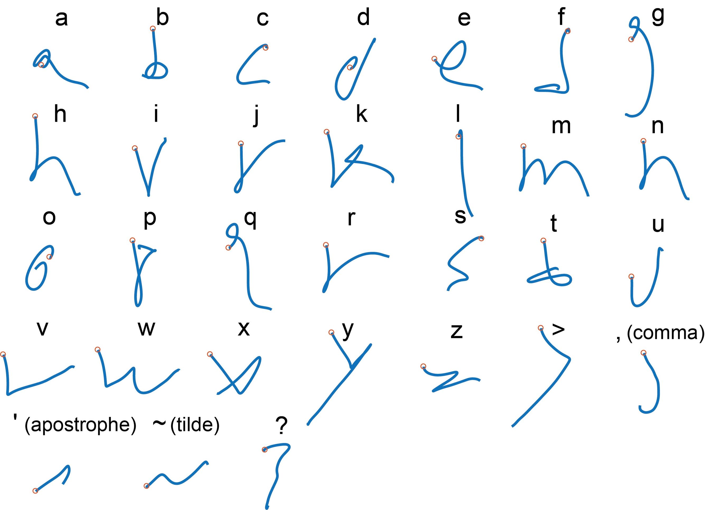 Ключевой ход ученых из Стэнфорда состоял в том, чтобы, на первый взгляд, самим усложнить себе задачу. Ведь рисовать в уме и распознавать такой почерк кажется гораздо труднее, нежели двигать курсор по экрану по прямой от буквы к букве и считывать эти перемещения. Но оказалось, в реальности все происходит ровно наоборот. Для мозга все прямые похожи друг на друга, а вот затейливые кривые линии, обозначающие тот или иной символ, кривятся очень по-разному. И в результате очень по-разному активируются клетки мозга. Рекуррентная сеть видит эти отличия, и по этим отличиям ей проще угадать, какой символ нарисовал в уме человек.
