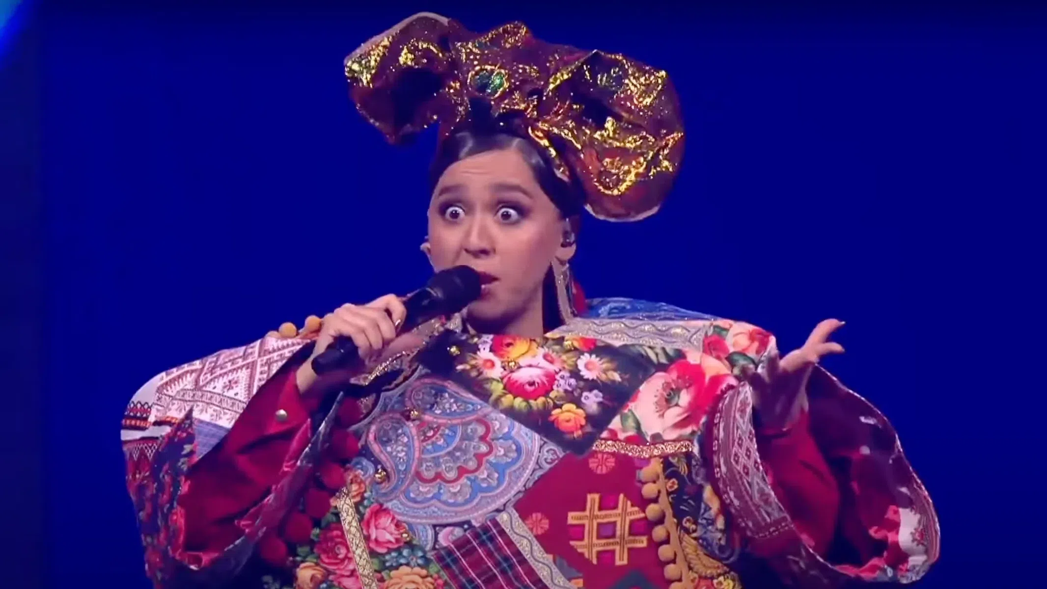 Девушка выступила со своей песней Russian Woman. Перед зрителями она появилась в ярком костюме, сшитом из тканей, присланных женщинами разных национальностей со всей России.