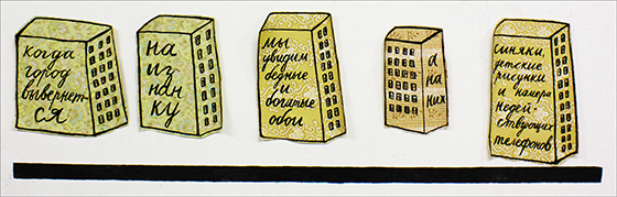 своеобразным эпиграфом или ключом к экспозиции можно счесть пентаптих «когда город вывернется / наизнанку / мы увидим бедные и богатые обои / а на них / синяки, детские рисунки и номера недействующих телефонов». в интервью дарья, что признана минюстом великой и ужасной, сравнивает свое искусство с этим жестом «выворачивания дома наизнанку», в котором глубоко личные образы и переживания становятся публичными и политическими.