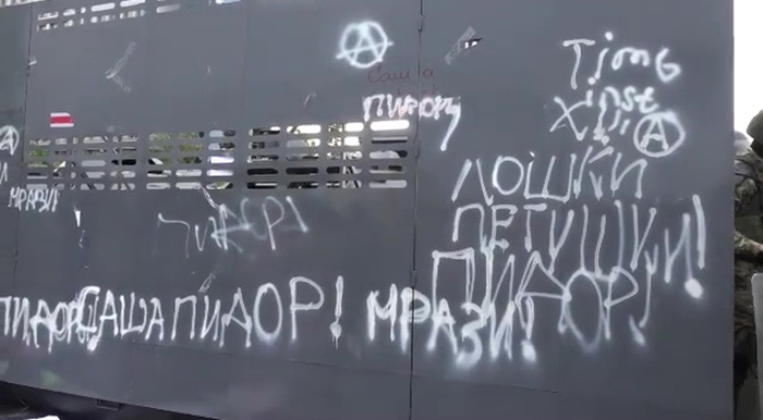 18-летних Софью Малашевич и Тихона Клюкача отправили с СИЗО в ноябре прошлого года. Софья написала на большом щите, которым ОМОН защищал дворец Лукашенко от мирных протестующих, "Лошки петушки" и "Саша пидор".