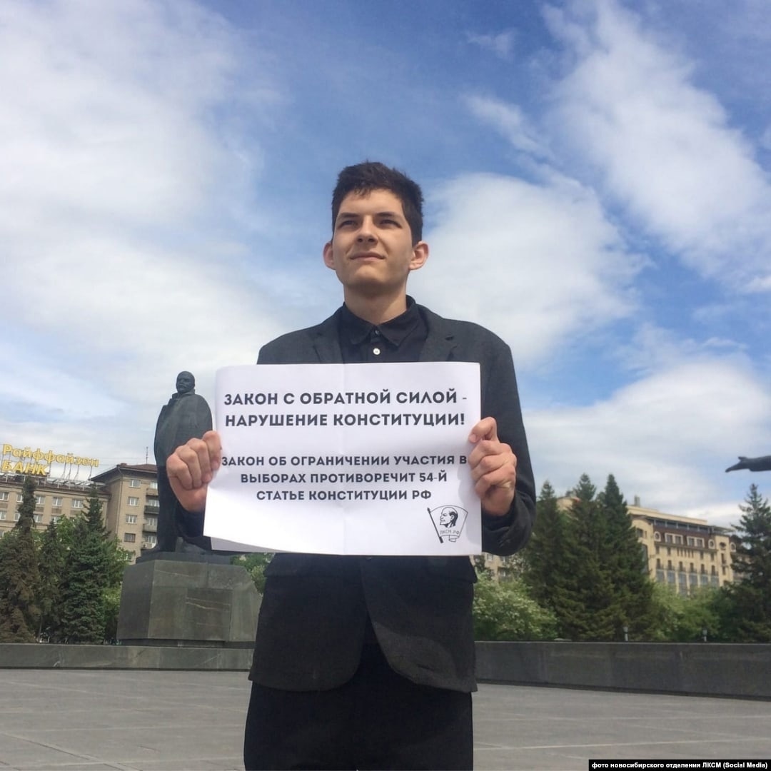 19 мая активисты новосибирского отделения Ленинского комсомола провели серию пикетов против законопроекта, который запрещает участвовать в выборах в Госдуму жителям, причастным к экстремистским организациям за три года до того, как они были признаны экстремистскими.