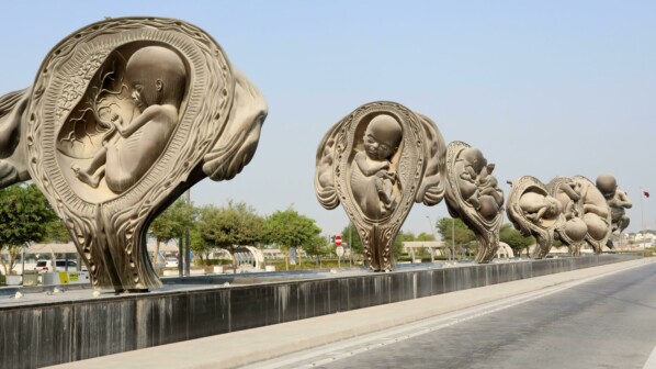 Часть из ряда 14 скульптур Дэмьена Хёрста напротив медицинского центра Sidra. В конце ряда — фигура новорождённого младенца высотой в 14 метров Фото Доминика Дудля