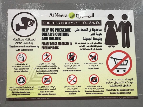 Если сравнивать с ближайшими соседями, то Катар намного либеральнее Саудовской Аравии, но строже ОАЭ. Во всех трёх странах ислам определяет законы и образ жизни, но трактуется с разной суровостью. Например, в Саудовской Аравии женщины обязаны носить абайю, а в ОАЭ допустима любая непрозрачная одежда, покрывающая колени и плечи. На деле в том же Дубае одеваются как угодно: хоть шорты, хоть мини.