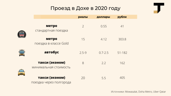 Транспорт в Дохе становится удобнее. В 2019 году открылось метро с 13 станциями, расширилась сеть автобусов и упростилось их использование. Если три года назад ради проездной карты нужно было ехать в офис транспортной компании, то теперь карта продается во всех торговых центрах и крупных супермаркетах.