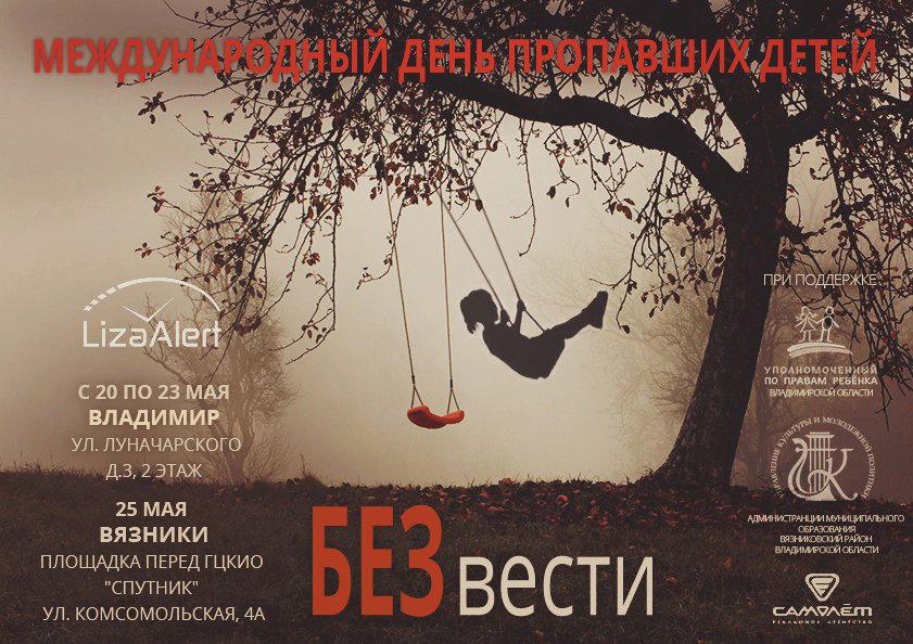 Волонтеры поисково-спасательного отряда «Лиза Алерт» откроют во Владимире, Муроме и Вязниках выставки «БЕЗвнимания» и «БЕЗвести». Экспозиции, приуроченные к Международному дню пропавших детей (25 мая), призваны привлечь внимание к теме, которая не теряет своей актуальности.
