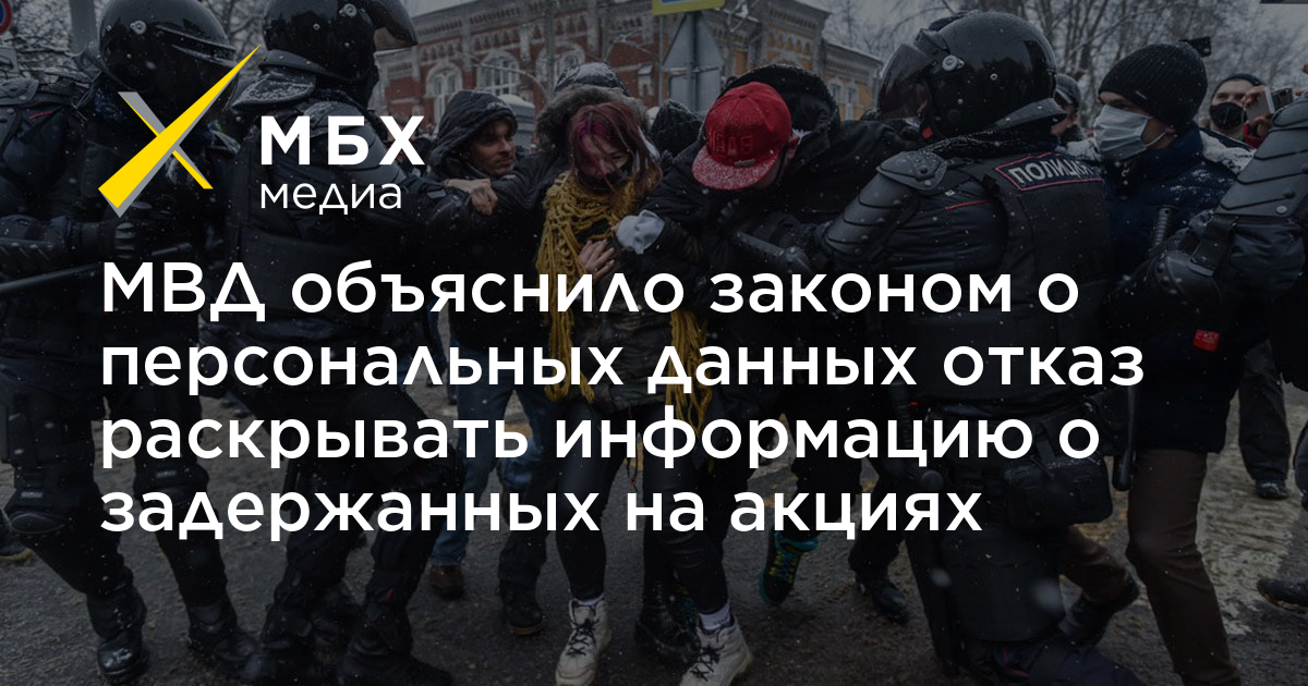 МВД не раскрывает правозащитникам информацию о задержанных на митингах, поскольку сведения содержат персональные данные. Об этом говорится в ответе ведомства на обращение «Команды 29» и «ОВД-Инфо».