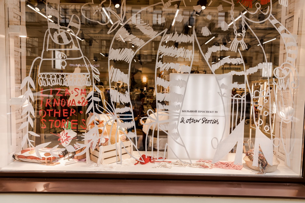 Еще одну коллаборацию организовали с художницей Лизой Смирновой, которая открыла в & Other Stories собственную арт-резиденцию и украсила витрины магазина.