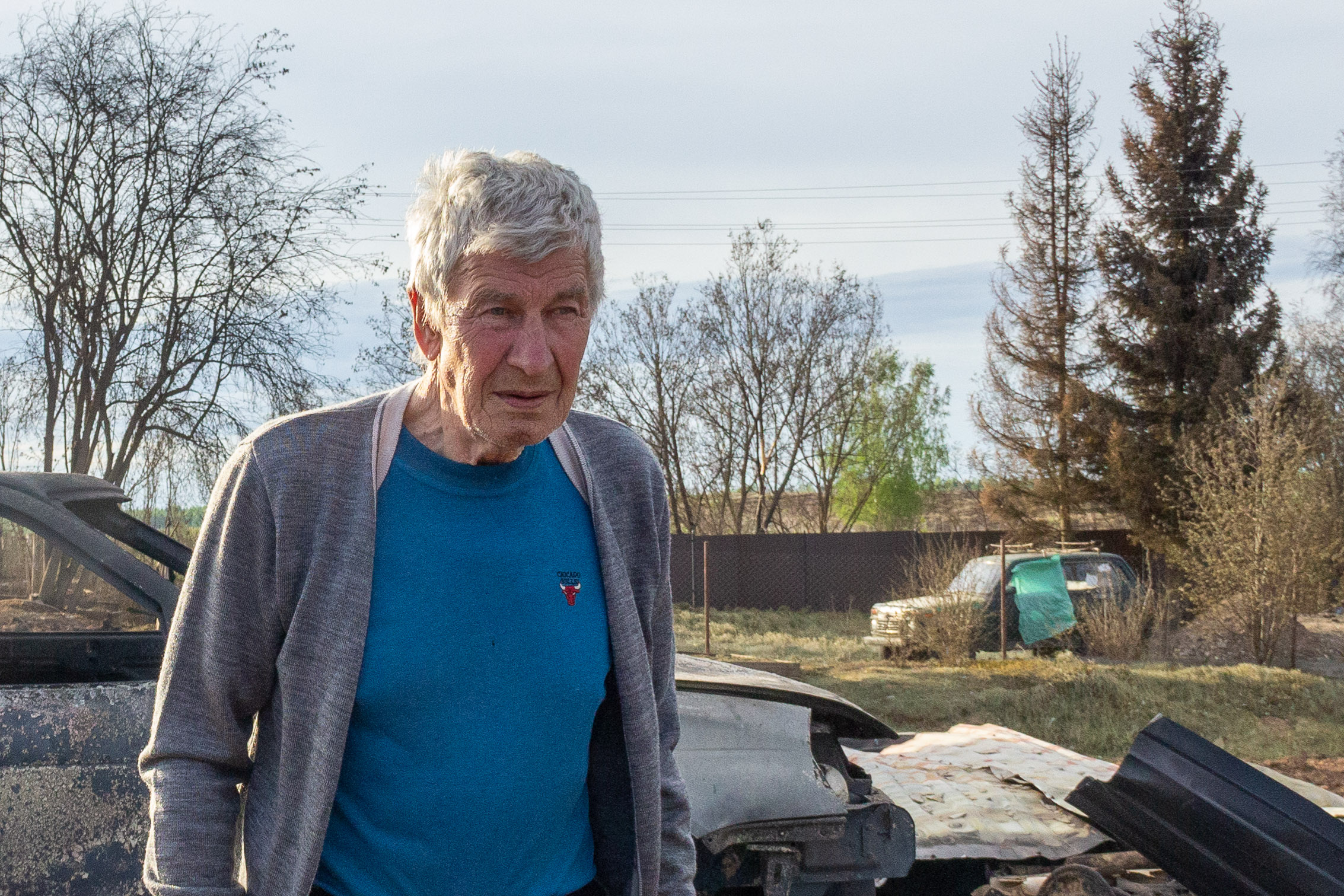 – Все на него оформлено. Нам-то жить осталось полтора понедельника, – кивает в его сторону Кульчинский и рассказывает, как пережил пожар. – Ветром сюда понесло, понесло, и начали полыхать эти дома. Потом ветром перекинуло на соседние участки. Сгорел один, второй, третий. Потом наш полыхнул. Это буквально несколько минут. Здесь четырнадцать домов сгорело моментально. Они как свечки – пых! Как стекла начали трещать, я из дома выскочил и убежал. Жена сегодня получала документы в Боровичах: права, паспорт, все сгорело. Мои-то документы успели вытащить. Потом я сидел вот тут, в стороне, и смотрел…