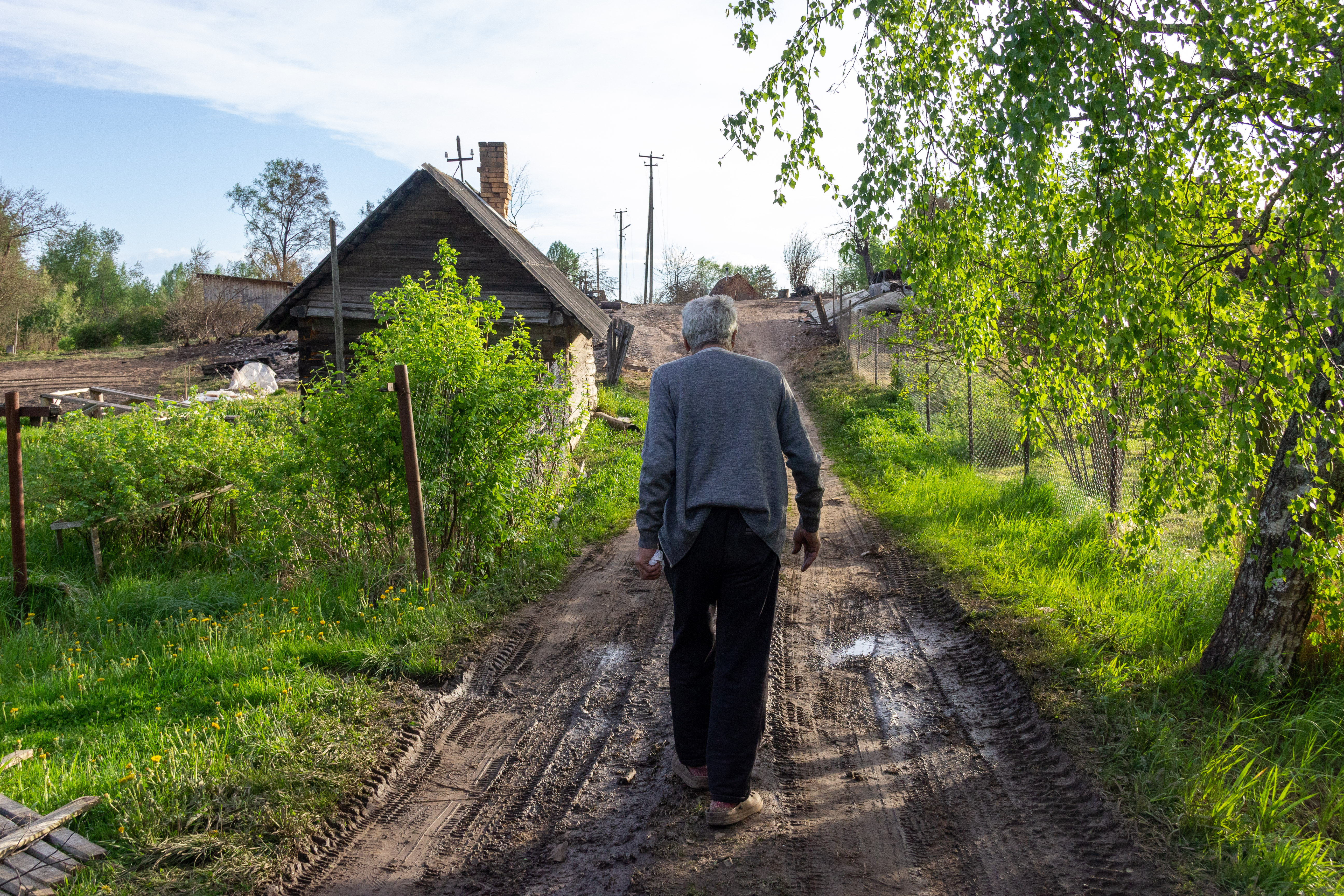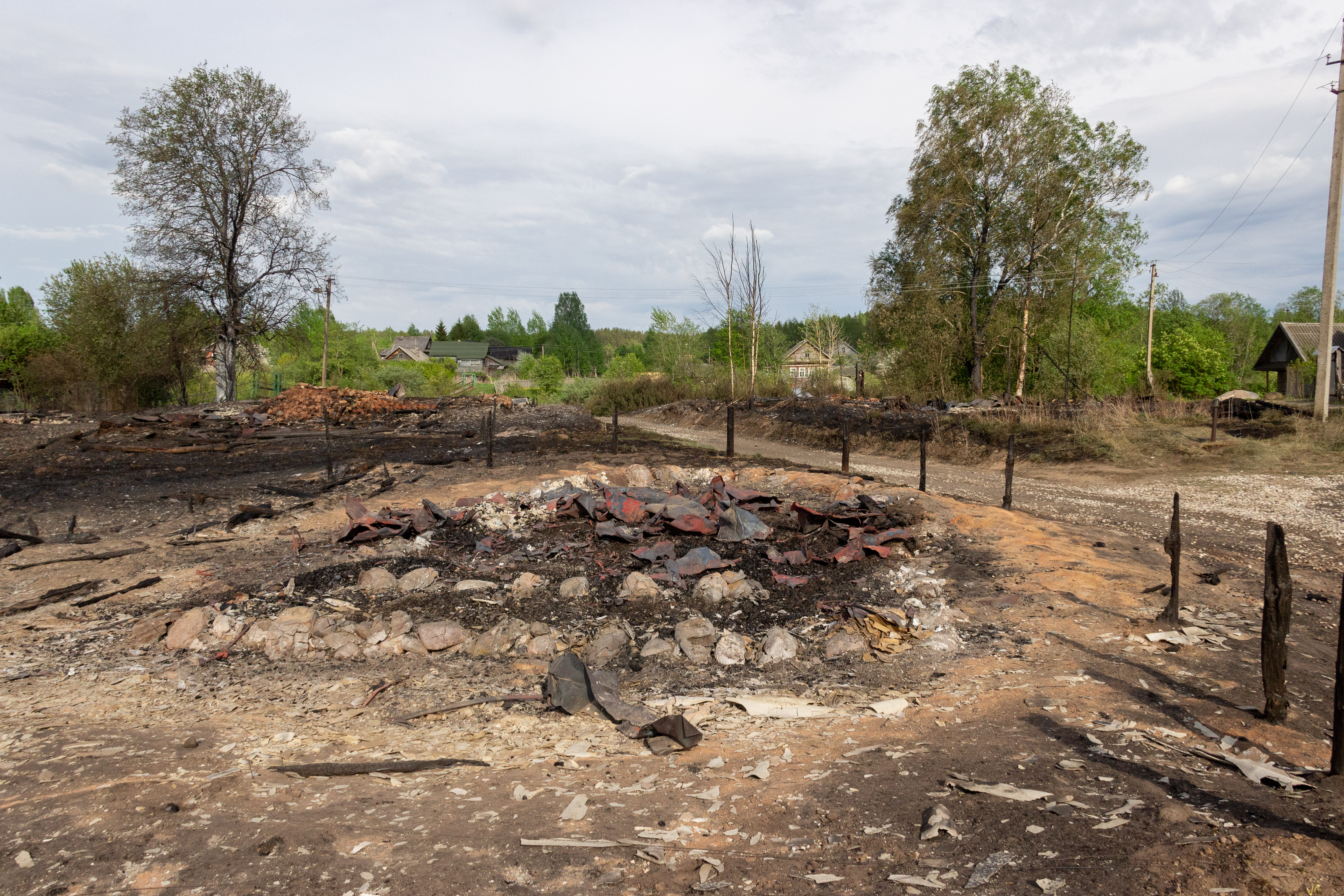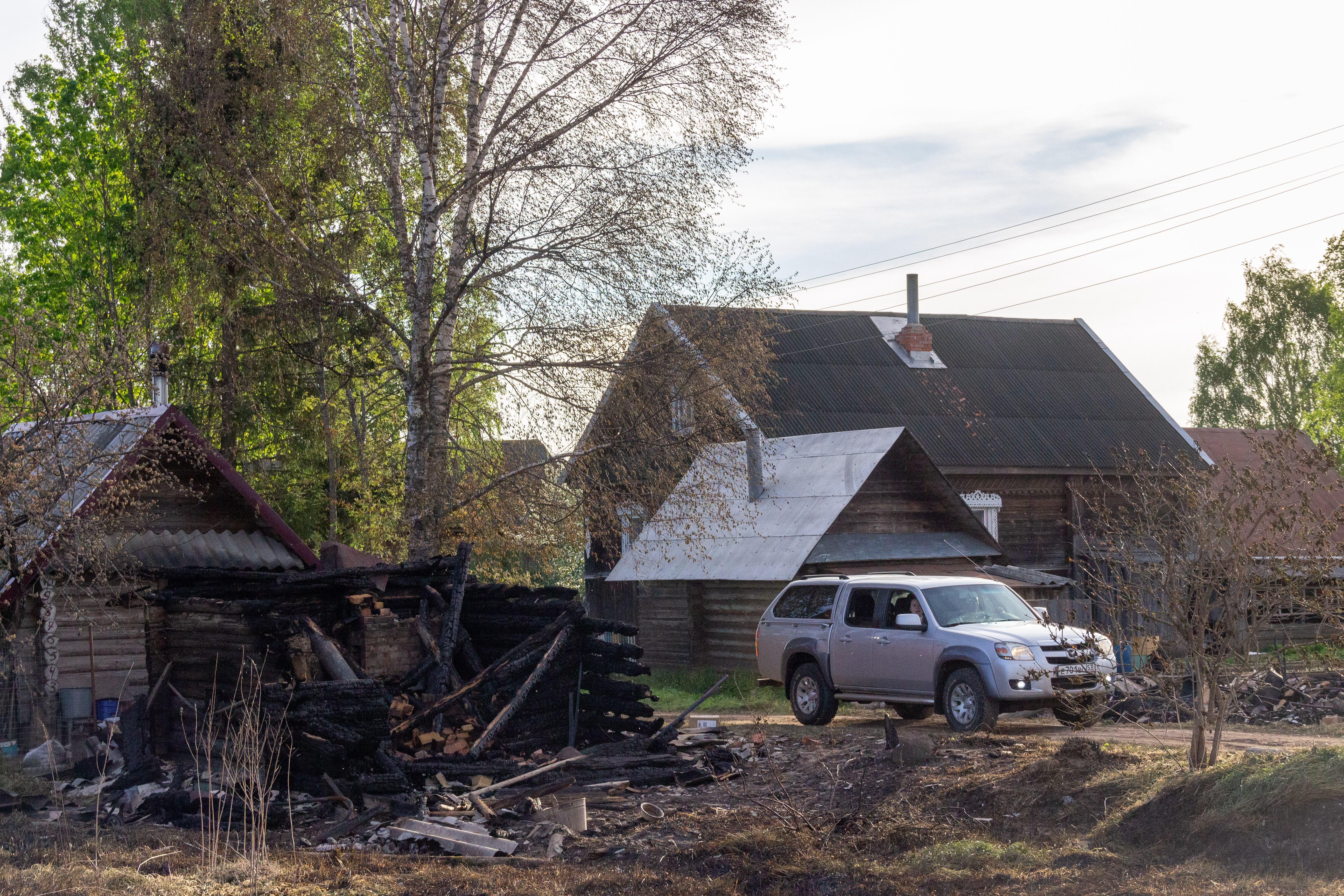 – Огонь моментально ушел туда, – собеседник показывает на возвышение на окраине деревни. – Там 14 домов сгорело, здесь еще несколько. 20 домов всего. Я приезжаю – тут уже горит, соседи прибежали с ведрами и тушат, чтобы в нашу сторону огонь не перекинулся. На сарайку огонь попал. Когда я приехал, они уже залили сарайку. Если бы не они, я бы сгорел нафиг.