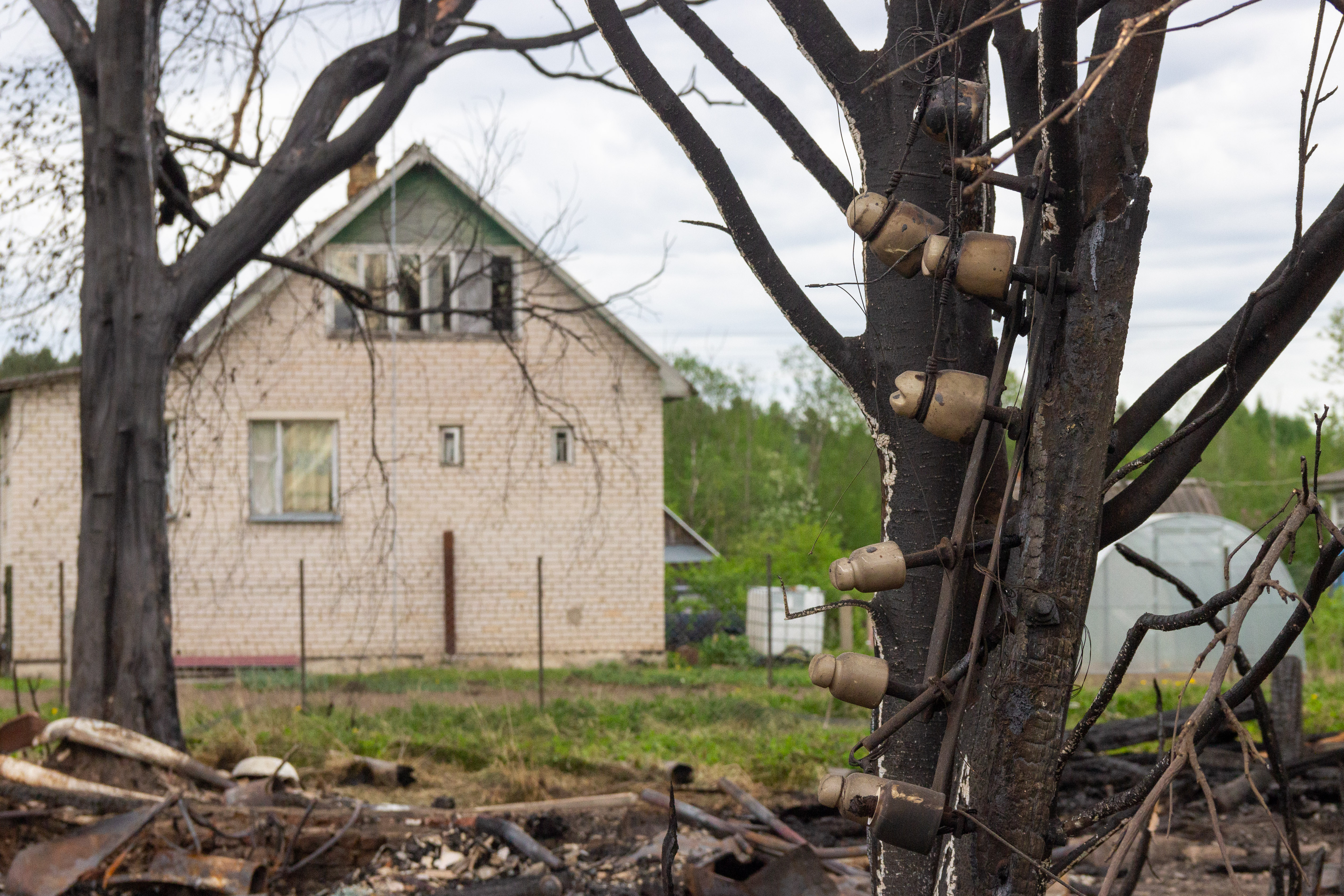 Громов живет в Великом Новгороде, но в Перелучи с супругой приезжает часто. Их дом находится ближе к центру деревни, примерно в 200 метрах от очага возгорания. Он уверен, что пожар случился из-за старых деревьев, которые ломаются и падают на провода.
