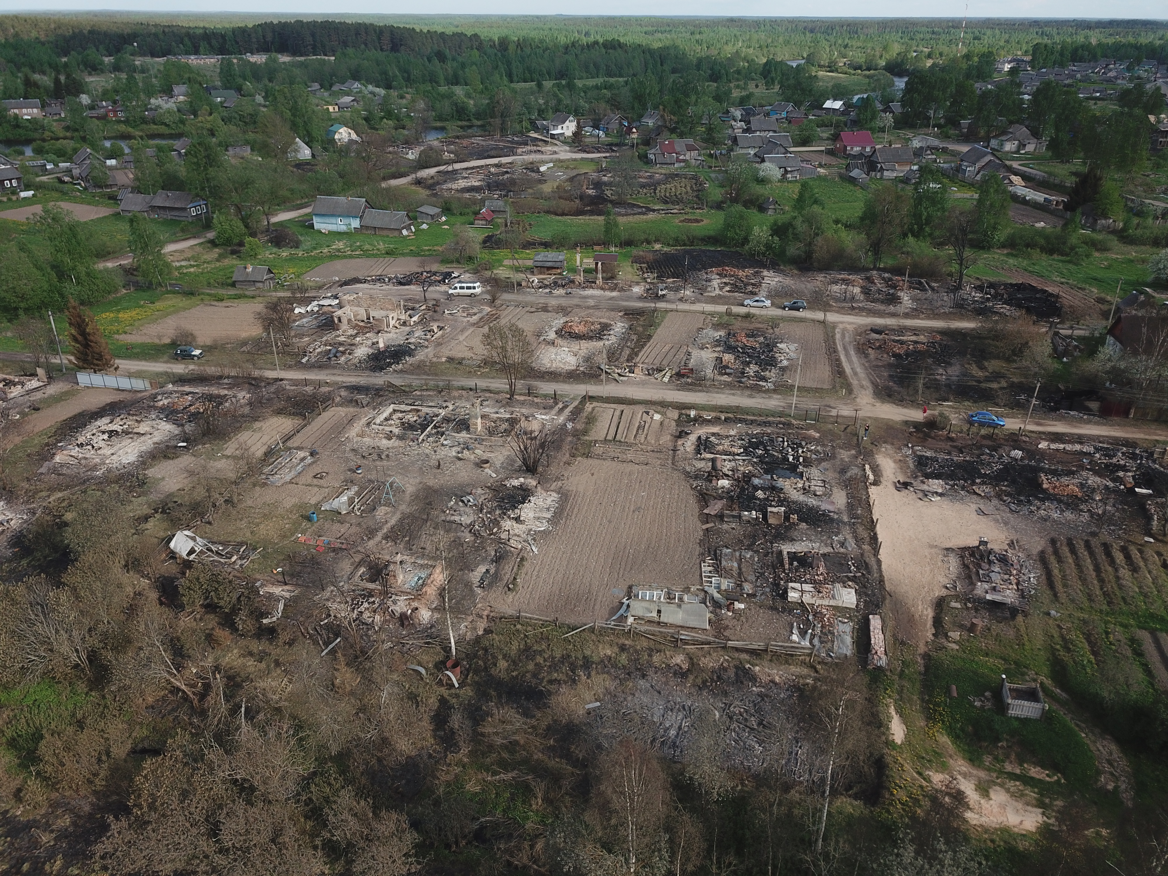 Пожар начался около часа дня 19 мая, и тушить его пришлось до глубокой ночи. Пожарный расчет из райцентра за 45 км от деревни прибыл на место, когда горели восемь домов и часовня. "Одна машина сначала пришла из Боровичей. И только потом приехали другие бригады", – рассказывает погорелец Юрий Кульчинский. Поняв, что потушить загоревшиеся постройки уже невозможно, пожарные приняли решение спасать остальную деревню – шквальный ветер мгновенно разносил огонь дальше.
