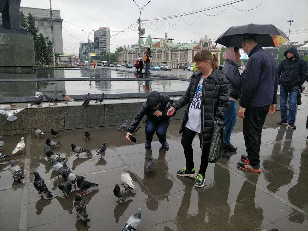 Новосибирцы по традиции пришли на площадь Ленина в субботу 22 мая покормить голубей и выразить свою гражданскую позицию.