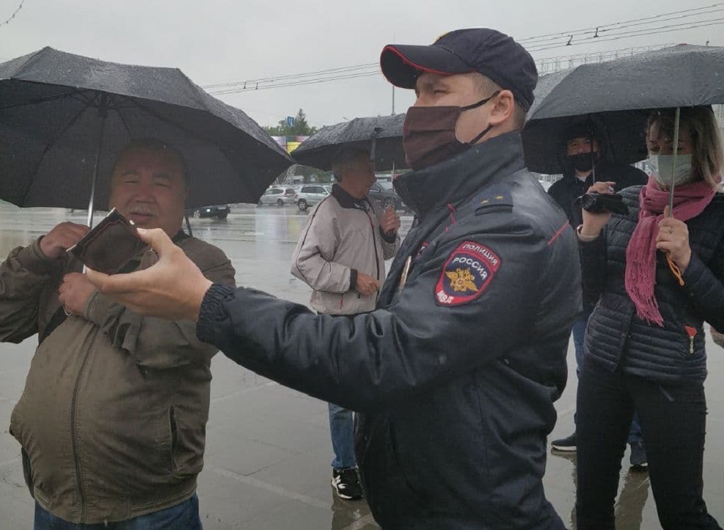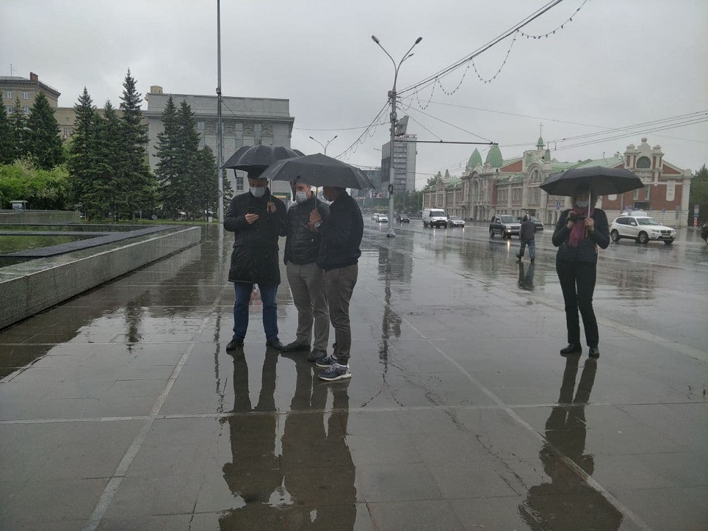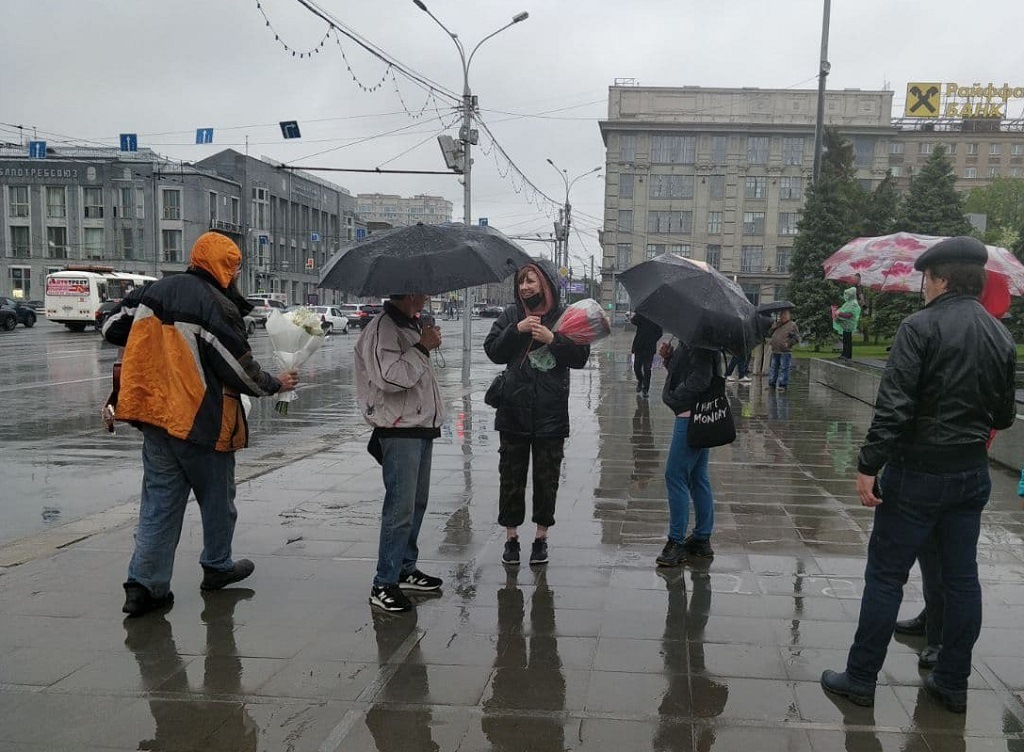 Традиционные субботние пикеты и кормление голубей проходят 22 мая в Новосибирске. Под дождем новосибирцы выступают в поддержку политика Алексея Навального и шамана Габышева и за свободу политзаключенным. Однако не обошлось без «провокаций».