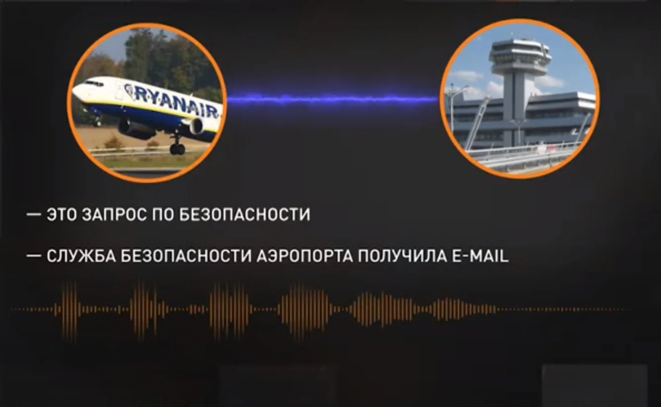 Два государственных белорусских телеканала — «Беларусь 1» и ОНТ — вставили в эфиры два разных фрагмента записи переговоров диспетчера и экипажа рейса. В версии «Беларусь 1» диспетчер спрашивает, откуда пилоты получили рекомендацию приземлиться в Минске. В версии ОНТ служба безопасности аэропорта (какого — не уточняется) получила некий E-mail и хочет сообщить об этом пилотам. Качество записей различается, их подлинность не подтверждена официальными лицами.
