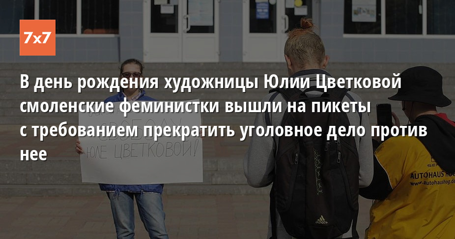 В день рождения художницы Юлии Цветковой смоленские феминистки вышли на пикеты с требованием прекратить уголовное дело против нее