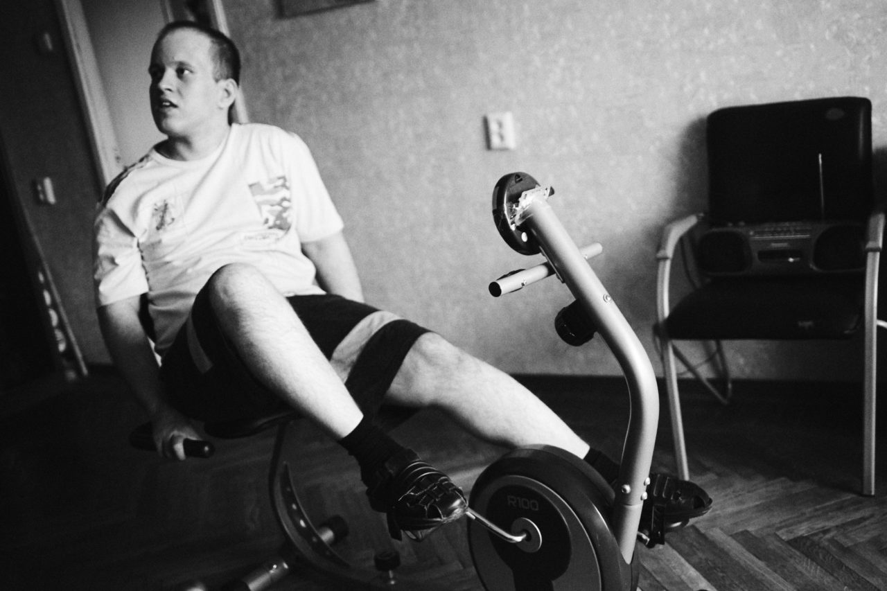 Антон занимается на велотренажереФото: Лиза Жакова для ТД «У нас еще недавно соседи выдали. Она пожаловались куда-то там, что у нас грохот. Что Антон ночами кричит, падает. Приходили из опеки. Я им говорю: “Если бы он падал, у него бы травмы были, синяки хотя бы. Он не падает. И ночами спит”. Соседи жалуются, что, мол, мы тут мебель громко двигаем. А у нас стол вот складной, мы его раздвигаем, когда заниматься садимся. Эти, из опеки, говорят: “А вы стол раздвиньте и не складывайте”. Так у нас же еще ЛФК. Его нельзя не убирать, места в комнате не хватит. Но мы же не ночью стол двигаем. Главное, раньше им ничего не мешало. А теперь жалобы пишут. C опекой я ссориться тоже не хочу, потому что вдруг не продлят (временную опеку. — Прим. автора)».