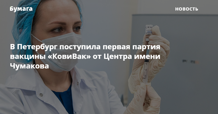 В Петербург поступила первая партия вакцины «КовиВак» от Центра имени Чумакова