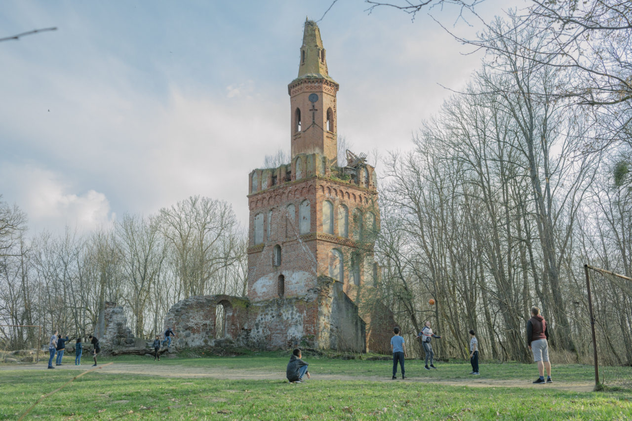 «Где-то в конце семидесятых она сгорела, — говорит Андрей, выросший в Храброве, единственный из местных, кто пришел на «воскресник» «Хранителей руин». — Потом, в восьмидесятые, кирху разбирали на кирпичи, гаражи строили, но, говорят, одному кирпич на голову упал, это было воспринято как знак, разбирать перестали».