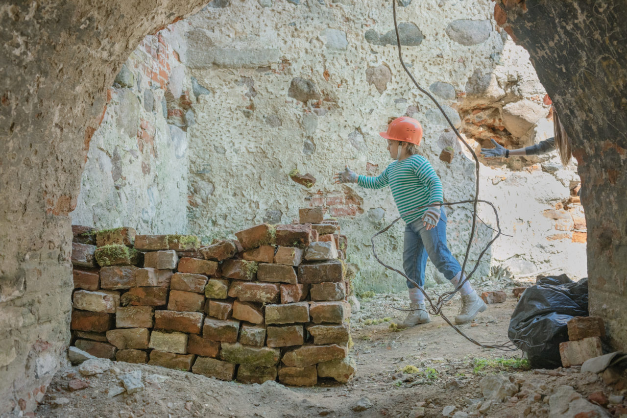 Взрослые и маленькие хранители руин расчищают от упавших кирпичей внутреннюю территорию кирхи в ХрабровеФото: Ксения Иванова для ТД С приходом СССР кирхи использовались под разные нужды: как зернохранилища, гаражи для сельскохозяйственной техники. В кирхе Святой Барбары вплоть до конца семидесятых работал матросский клуб, а дом пастора был офицерской гостиницей.