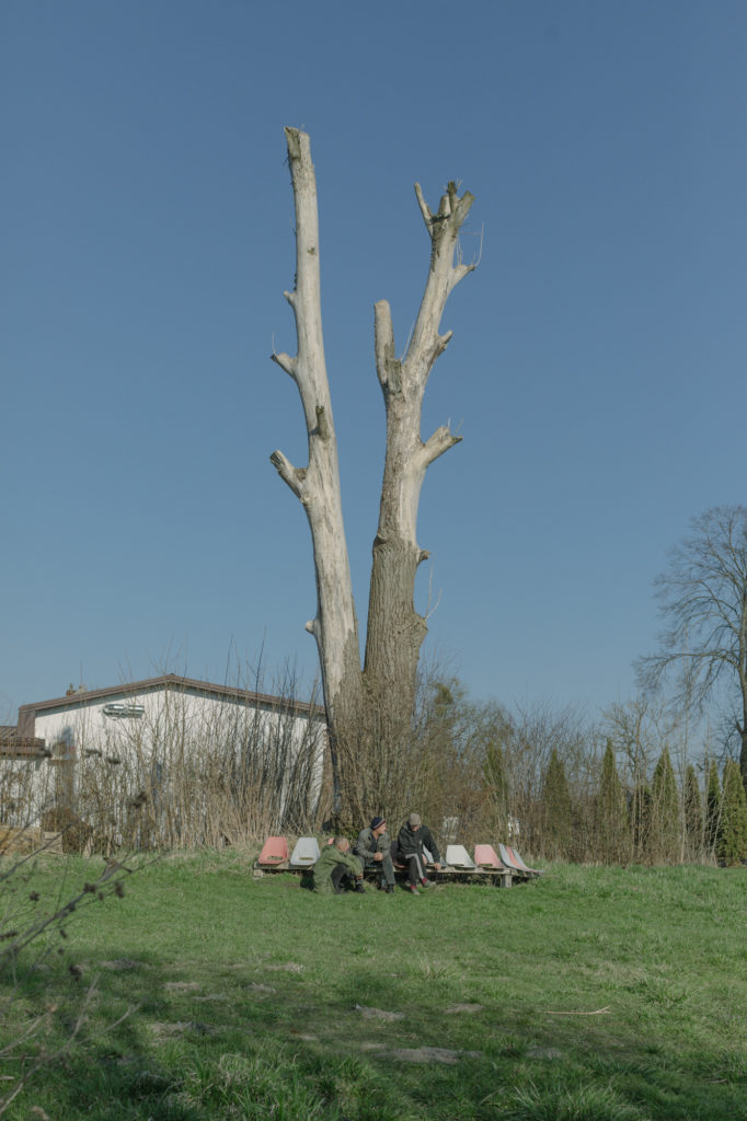 Утром в один из первых по-настоящему теплых весенних дней в окрестности поселка Храброво съезжается необычно много машин. Они останавливаются неподалеку от полуразрушенного кирпичного здания с огромным гнездом аиста на самой верхушке. Из машин выходят люди в рабочей одежде с топорами и бензопилами наперевес.