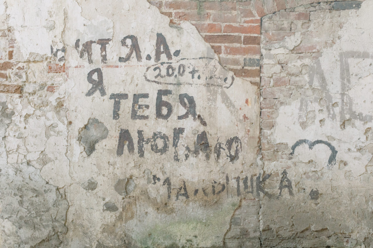 Современные надписи рядом с фресками конца ХIV века в кирхе в Кумачеве (нем. Куменен) середины XIV века. В начале 2000-х годов в заброшенной кирхе обнажились фрески предположительно конца ХIV века, на сегодняшний момент кирха продолжает разрушаться. «Хранители руин» весной 2021 года начали работу по очистке территории памятника и по привлечению внимания общественности к проблеме сохранения уникального объектаФото: Ксения Иванова для ТД «Вот видите, какой-то начальный этап, если это можно так назвать. Все-таки задумываются уже о сохранности», — сказала мне Наталья Андреевна. На слова о том, что все сделали волонтеры по собственной инициативе и полного восстановления здания в планах у них нет, заметила: «Ну прекрасно, но, может быть, они действуют не просто так? Может быть, они с кем-то поговорили, посоветовались?»