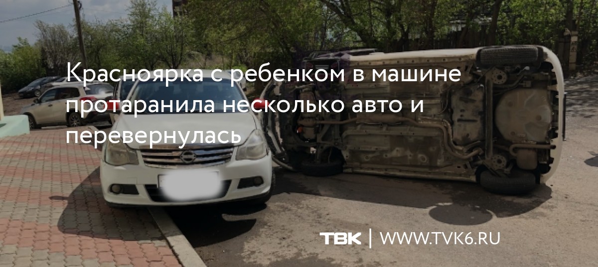 Красноярка с ребенком в машине протаранила несколько авто и перевернулась