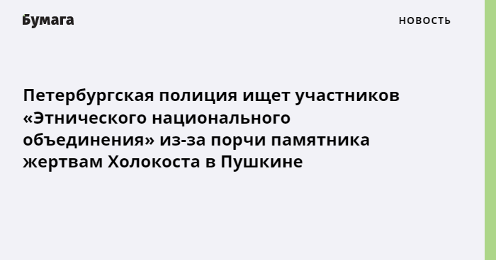 Полиция ищет участников «Этнического национального объединения», которые, предположительно, оставили оскорбительные надписи на памятнике жертвам Холокоста в Пушкине. Это следует из ответа прокуратуры на запрос депутата Закса Бориса Вишневского.