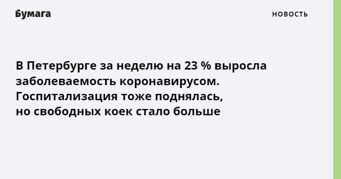 В то же время улучшилась ситуация со свободными койками после возобновления работы нескольких ковидных стационаров. Сейчас в Петербурге развернуто 5992 койки, из них свободно 1006, то есть 16,8 %. Доля тяжелых больных в стационарах составляет 21,6 %. Объем вакцинации немного вырос на 3,7 %, привились за прошедшую неделю 32 067 петербуржцев.