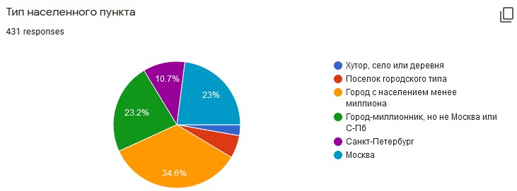 Результаты опроса волонтеров портала «Люди науки»Фото: «Люди науки» Согласно исследованию портала «Люди науки», значительная доля активных научных волонтеров проживает в городах с населением меньше миллиона, хуторах и деревнях, где нет крупных научных центров, способных организовать гражданскую научную деятельность. «Это свидетельствует, что люди по собственному желанию стремятся быть научными волонтерами», — уверена Альфия.