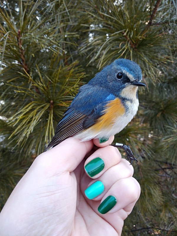Синехвостка (Tarsiger cyanurus)Фото: Юрий Анисимов «Практика привлечения волонтеров с первого года нашей работы хорошо себя зарекомендовала. Благодаря их помощи станция может работать семь месяцев, с апреля по октябрь, — рассказывает Валентина Анисимова. — Учитывая ненормированный рабочий день и то, что птицы не признают выходных, без волонтеров нам бы пришлось непросто. А ведь, помимо работы с птицами, на станции много хозработ: починка ловчих сетей, заготовка дров, окашивание. Тут тоже выручают волонтеры».