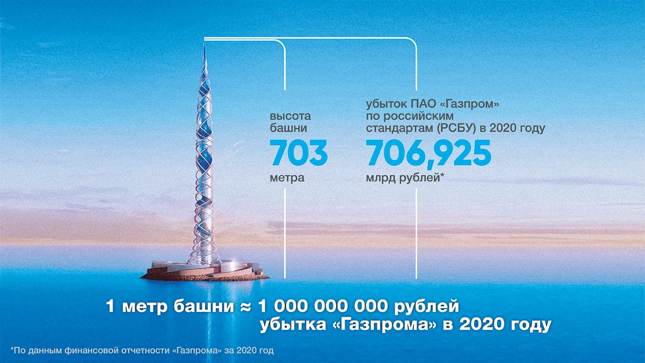 Кстати, прибыль «Газпрома» за 2020 год, относящаяся к ее акционерам, упала почти в 9 раз: в 2019 году этот показатель составил 1,202 трлн рублей, в 2020 году — 135,3 млрд рублей. И на программу газификации регионов не хватает денег. Зато есть на небоскребы?