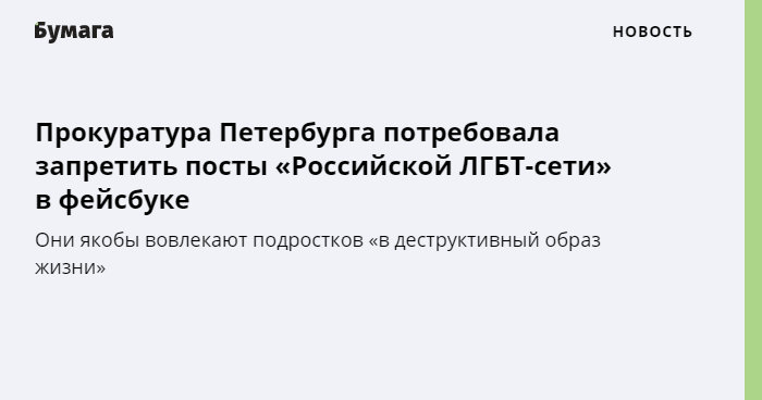 В «Российской ЛГБТ-сети» сказали «Бумаге», что это четвертая попытка прокуратуры заблокировать информационные ресурсы организации. В настоящий момент ведутся судебные заседания.