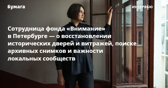 Сотрудница фонда «Внимание» в Петербурге — о восстановлении исторических дверей и витражей, поиске архивных снимков и важности локальных сообществ