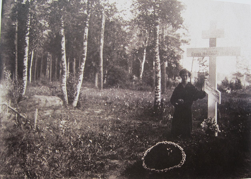 Этот «сюжет», связывающий воедино двух его любимых героев, о. Андрей строит исходя из того, что Чекрыгин, совсем недолго проживший в Пушкине, был тем не менее похоронен на центральной аллее Боголюбского кладбища, причем по соседству с участком самого Шарикова. Сейчас эта «аллея» — слабо заметная среди леса прогалина чуть в стороне от насыпной патрульной дороги Мосводоканала, ведущей к Учинскому водохранилищу. Однако бывшее кладбище уже пришло тут в движение, это место словно бы «мерцает», находится в промежутке между несколькими временами и ситуациями. Посреди зелени, кустов, мощных и молодых деревьев с лета 2018 года здесь устроен удивительно легкий, своей невесомостью похожий на самодельные, навечно запоминающиеся картонные и жестяные обелиски братских могил Великой Отечественной мемориал из четырех деревянных крестов и легкого заборчика, отмечающий место захоронения Михаила Шарикова и его семьи. Напротив, рядом с горой бурелома, прислонился найденный Дударевым кусок гранитного надгробия семьи Евдокии и Варфоломея Рабенек, других местных меценатов. А вот муравейник, огромное разветвившееся дерево и глубокий провал места захоронения Василия Чекрыгина. Ловлю тут еще один «сдвиг» — над этой разверзшейся могилой не горюешь, а радуешься.