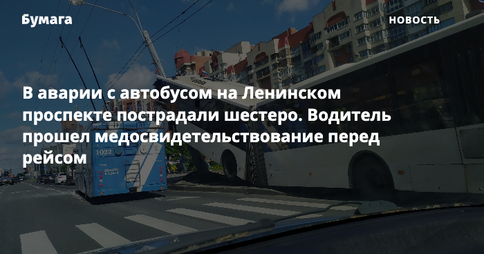 В аварии с автобусом на Ленинском проспекте пострадали шесть человек. Об этом «Бумаге» сообщили в пресс-службе комитета по здравоохранению.